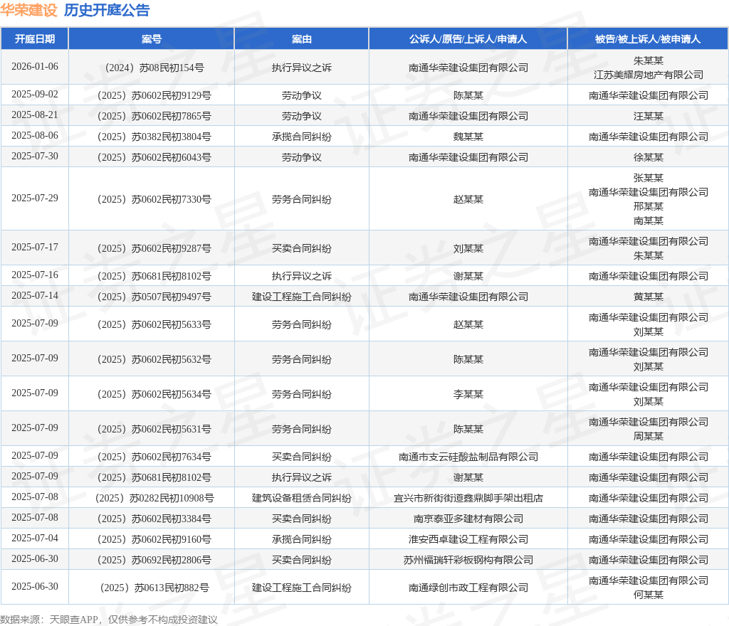 本站消息,根据天眼查APP显示,近日公布了一则南通华荣建设集团有限公司作为被告/被上诉人的开庭公告,详细内容如下: